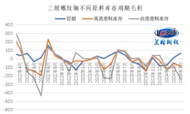 图2 三级螺纹钢不同原料库存周期毛利水平变化