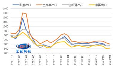 目前我国91视频在免费线观看钢管出口报价优势仍存。研究中心监测数据显示,截至2024年4月11日,印度、土耳其、独联体热轧卷板出口报价(FOB)分别为560美元/吨、605美元/吨和565美元/吨,中国热轧卷板出口报价(FOB)为515美元/吨;目前我国热卷出口报价分别较印度、土耳其、独联体热卷出口报价低45美元/吨、90美元/吨和50美元/吨(详见图4)。