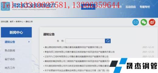 12月22日,河北省工信厅发布《迁安轧一钢铁集团有限公司建设项目产能置换方案公告》。