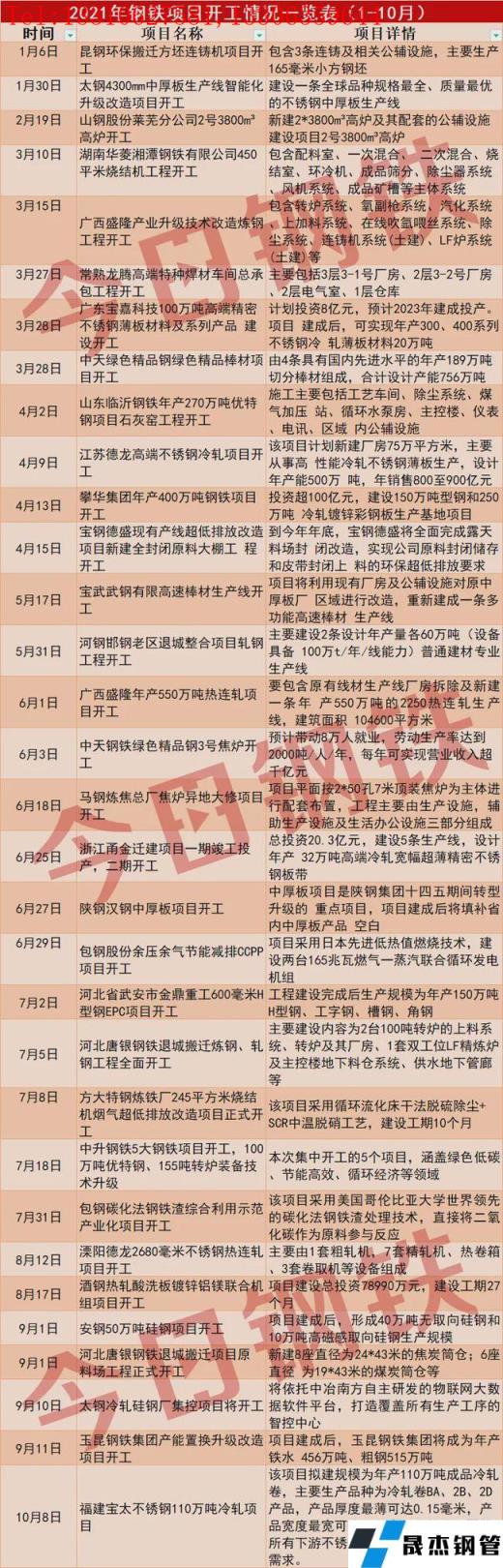 据【今日钢铁】不完全统计,截至12月29日,包括以上8个项目在内,已有40个钢铁项目陆续开工,现将1至10月份已开工项目进行如下整理: