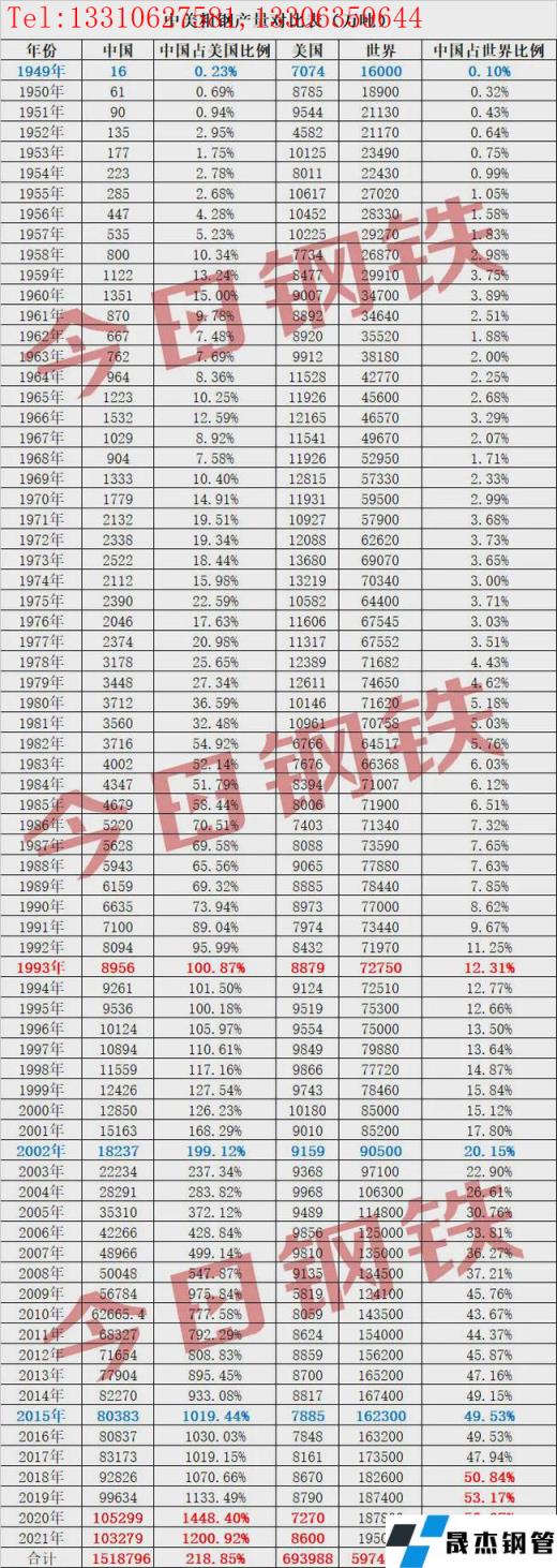 根据以上情况,笔者查阅了世界钢铁行业协会、国家统计局以及其他相关渠道的数据信息,收集整理了中国、美国以及世界1949年到2021年粗钢产量的数据(仅用于示意分析),以此勾勒并呈现中国钢铁产业发展的线条!这是中国钢铁工业自力更生、赶超先进的历史,也是中国钢铁工业走向世界之巅的记录!