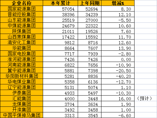 据中国煤炭工业协会统计与信息部初步统计,2021年,全国原煤产量超3000万吨企业共20家。其中,3000万吨-5000万吨企业5家,5000万吨-1亿吨企业9家,1亿吨-2亿吨企业1家,2亿吨-4亿吨企业4家,5亿吨以上企业1家。20家企业产量合计为26.56亿吨,同比增加7869.9万吨,增长3.1%,占全国原煤产量的65.3%。产量及排名情况如下: