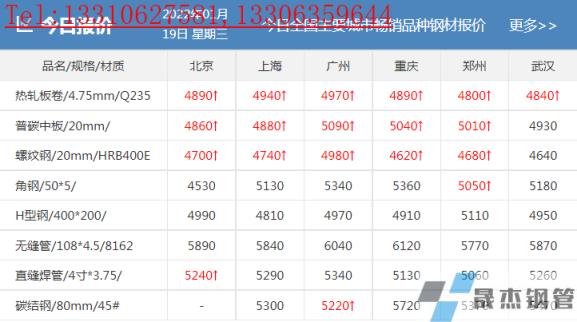 19日各地市场稳中个别上调:上海市场螺纹4650-4690,西城抗震4700,其他4570-4620,兴鑫抗震4630,联鑫黄海抗震4640,盘螺4750-4980,高线亚新4650;北京市场,河钢小螺纹4740-4760,大螺纹4630-4650,盘螺4810;杭州市场螺沙4730中4730西城4720浙江华宏4620江苏镔鑫4620长达抗震4720线材中天4930亚新4680联鑫黄海盘螺4800;福州市场现线三钢4970三宝4950,螺三钢4760三宝4740大东海4740吴铁4730,盘三钢5040三宝5020。济南市场,莱钢螺纹4810,永锋、石横螺纹4800,永锋、石横盘螺5080。重庆市场商家陆续离市,现达钢螺4800、盘4920,永航螺4780、盘4870,泸钢螺4780、盘4870。(单位:元/吨)