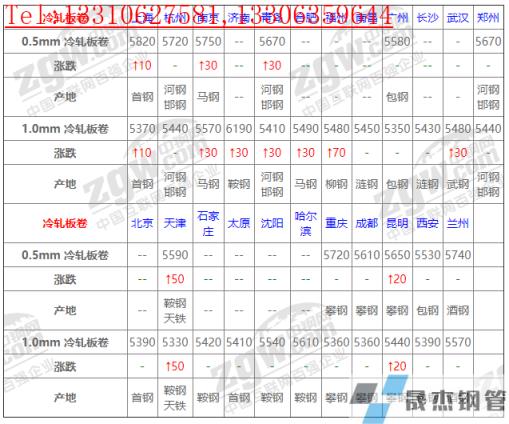 全国23个主要市场1.0mm 冷轧板卷平均价格5475元/吨,较上个交易日上调12元/吨。