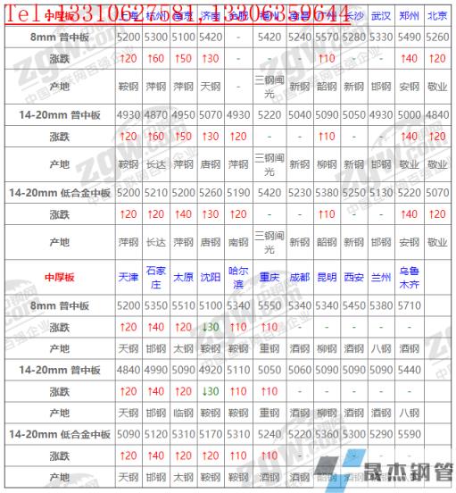 全国23个主要市场14-20mm 普中板平均价格5030元/吨,较上个交易日上调13元/吨。
