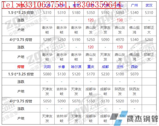 全国15个主要市场4寸*3.75 焊管平均价格5147元/吨,较上个交易日上调4元/吨。