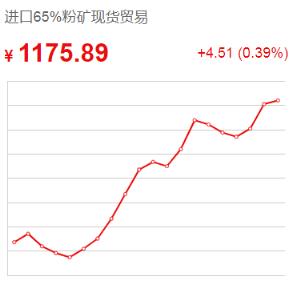 1月21日,跟据今日铁矿公布的铁矿石价格来看,进口65%粉矿现货贸易价格1175.89元/吨,较前一个交易日上涨4.51,涨幅0.39%;进口54%粉矿到岸价格161.57美元/吨,较前一个交易日上涨1.45,涨幅0.91%;国产65%铁精矿价格1009.72,元/吨,较前一个交易日上涨1.42,涨幅0.14%。