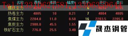 今日螺纹主力期货涨17,收报4694,涨幅0.36%;热卷主力涨10,收报4805,涨幅0.21%;焦煤主力涨11,收报2204,涨幅0.5%;焦炭主力涨45.5,收报2980,涨幅1.55%;铁矿石主力涨25.5收报776,涨幅3.4%。