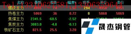 今日螺纹主力期货涨74,收报4955,涨幅1.52%;热卷主力涨36,收报5069,涨幅0.72%;焦煤主力跌60.5,收报2341.5,跌幅2.52%;焦炭主力跌4,收报3083,跌幅0.13%;铁矿石主力涨25.5,收报821.5,跌幅3.2%。