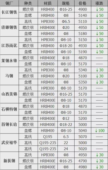 跌幅最大为首钢长治盘螺;