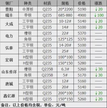 2月15日邯郸华信废钢下调40元:钢筋头3610-3680冲豆铁饼3610-3680模具钢纯道轨U型钢3670钢板料3650-3680工角槽板料3510-3610马蹄铁3560-3610火车小料3670剪切料3630-3610破碎料3380-3430不含税。