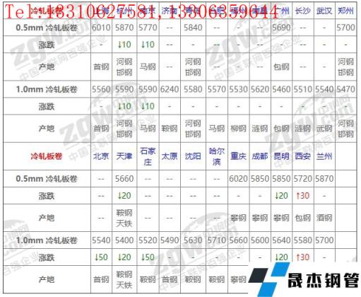 据价格显示:今全国冷轧稳中偏弱,下调幅度10-30,期卷持绿震荡,贸易商心态趋于谨慎,市场交投氛围不佳,观望氛围浓厚,预计短期市场弱势调整;