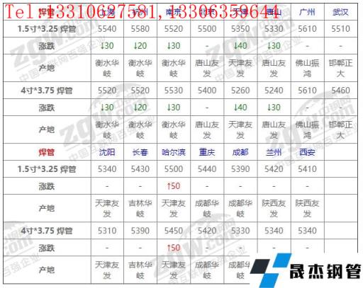 全国15个主要市场4寸*3.75 焊管平均价格5408元/吨,较上个交易日下调7元/吨。