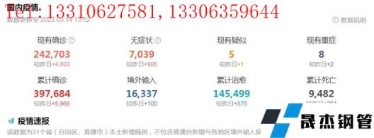 截止3月14日下午1点52分,全国现有确诊病例242703例,较昨日新增4803例,无症状感染者7039例,较昨日新增906例。目前确诊病例集中在吉林、长春、青岛、深圳、宝鸡、天津、上海、廊坊、沧州、西安等地,上述地区及周边关联地区不断上调防控疫情等级。