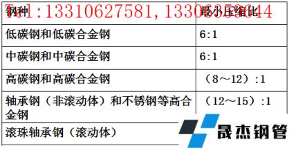 不同钢种要求的最小压缩比