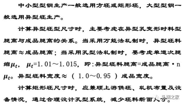 H型钢、工字钢、槽钢等坯料断面的选择