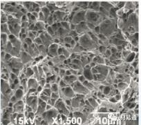 微孔聚集型断裂的微观特征:断口上有大量韧窝。材料在塑性变形时,在夹杂物、析出物等第二相粒子周围或有缺陷地区先出现裂纹,形成微孔,进一步塑性变形时,微孔长大、聚集、断裂。