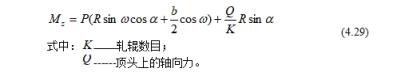 当有顶头时如图4-13所示,在前进方向受到顶头的轴向阻力(Q),这时传动轧辊所需总轧制力矩为: