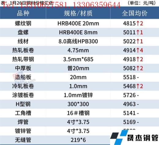 中厚板:1月26日,全国24个主要城市20mm普板均价5082元/吨,较上一交易日上涨2元/吨。黑色系期货盘面回落,不过由于随着春节假期的临近,市场商家及下游陆续离市,节前补库存基本结束,需求有所停滞,价格涨势乏力,商贸心态一般。另随着春节的临近,市场观望情绪浓厚,现货市场基本处于半休假模式。综合来看,预计27日中厚板价格或将以盘整为主。