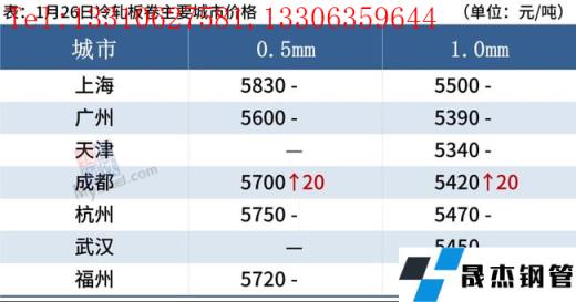 冷轧板卷:1月26日,全国24个主要城市1.0mm冷卷均价5468元/吨,较上个交易日上涨2元/吨。市场上中小户基本已放假,仅剩国企及部分大户在岗。下游前两日就开始休假,市场运输车辆稀疏,处于有价无市的局面之中。据贸易商反馈,现货市场基本处于休市状态,年前价格将以稳为主。综合来看,故预计27日国内冷轧板卷价格或将持稳运行。