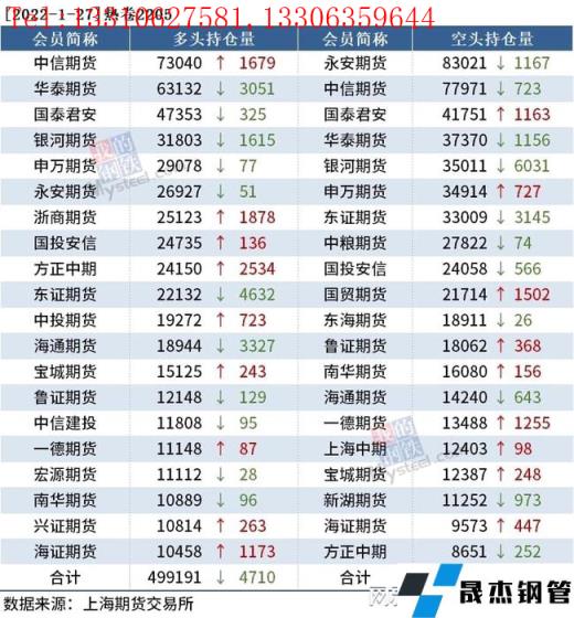 截至1月27日收盘,螺纹钢2205收4673元/吨,跌0.32%;热卷2205收4795元/吨,跌0.21%;铁矿石2205收769元/吨,涨0.46%。