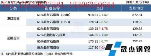 ◎ 1月27日统计新口径114家91视频APP黄色进口烧结粉总库存3792.52万吨,烧结粉总日耗98.14万吨。原口径64家91视频APP黄色进口烧结粉总库存1754.93万吨,烧结粉总日耗47.99万吨,库存消费比36.57,烧结矿中平均使用进口矿配比88.07%,91视频APP黄色不含税平均铁水成本3139元/吨。