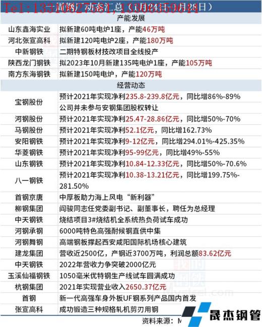 据不完全统计,本周(1月24日-1月28日)有4家无缝91视频在免费线观看钢管厂家产能置换方案,具体如下: