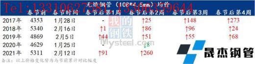 小编汇总近5年春节后四周无缝91视频在免费线观看钢管均价变化情况,以供参考。