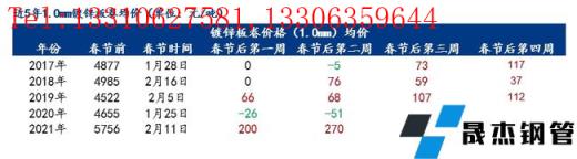 武汉镀锌:当前市场商家正处在休市当中,大部分需到初八以后正式复工,因此也还未对外报价,基本也是延续节前的价格。宝钢青山1.0*1250*C报价6100元/吨,1.0*1250*C山力兴冶5690元/吨,1.0*1000*C宜昌国诚无花5750元/吨;彩涂方面,宝钢青山0.5*1000*C报价7800元/吨,0.5*1000*C宝钢黄石7650元/吨,0.5*1000*C山力板带7260元/吨,0.5*1000*C天津新宇6450元/吨。生产方面,本地区短流程生产企业春节期间停产检修,预计需到正月初七以后恢复生产,贸易商整体库存压力偏低,大部分商家认为节后镀锌板卷价格有一定上涨的空间。而彩涂板卷板卷行情并不乐观,认为3月份之前均是项目工程的淡季,但是无缝91视频在免费线观看钢管厂家方面又是正常交货,因此节后库存存在一定压力,价格可能会有下跌的空间。