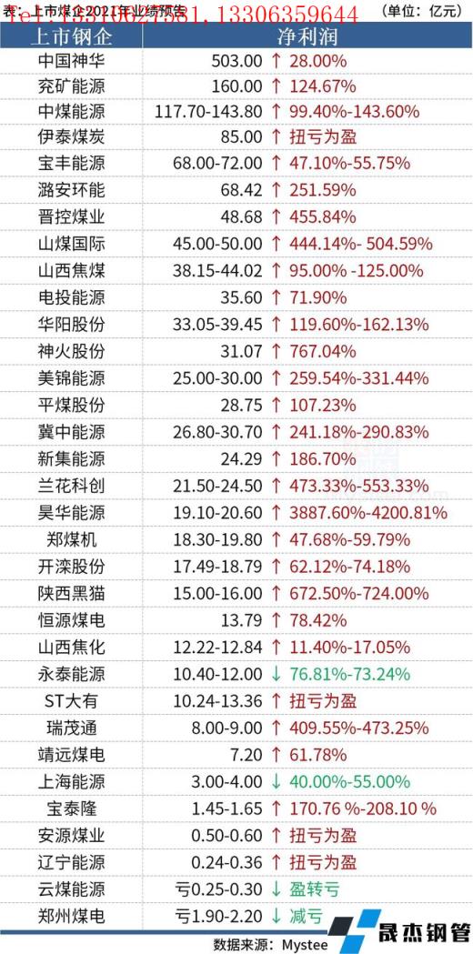 免责声明:本网站(山东聊城91视频官网下载无缝钢管厂www.hujuzx.com)刊载的“29家上市煤企业绩飘红,15家实现净利润翻倍增长”等均源于网络,版权归原作者所有,且仅代表原作者观点,本文所载信息仅供参考。转载仅为学习与交流之目的,如无意中侵犯您的合法权益,请及时联系删除。本网站刊登此篇文章并不意味着本站赞同其观点或证实其内容的真实性,91视频官网下载不对其科学性、严肃性等作任何形式的保证。如果侵犯了您的版权,请尽快联系91视频官网下载予以撤销,谢谢合作!