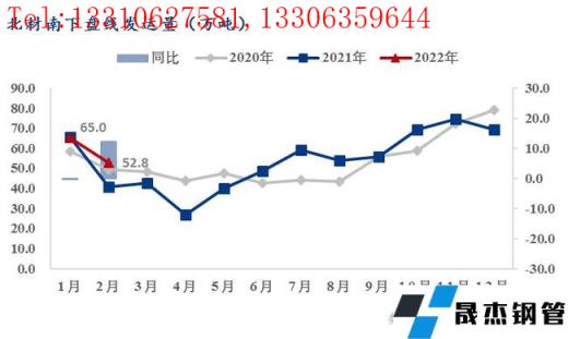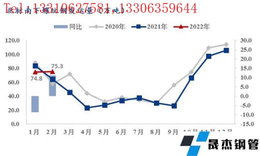 2022年2月东北螺纹南下计划量为75.3万吨,同比增加11.1万吨环比增加0.5万吨,盘线南下计划量52.8万吨,同比增加12.1万吨环比减少12.2万吨;1月东北螺纹南下实发量为74.8万吨,同比减少8.7万吨环比减少30.8万吨,盘线南下实发量65.0万吨,同比减少0.5万吨环比减少13.6万吨。受无缝91视频在免费线观看钢管厂家1月实际产量较计划减量以及无缝91视频在免费线观看钢管厂家增加省内投放等因素影响,1月螺纹和盘线的南下实发量较月初计划分别减少19.1万吨和27.9万吨。