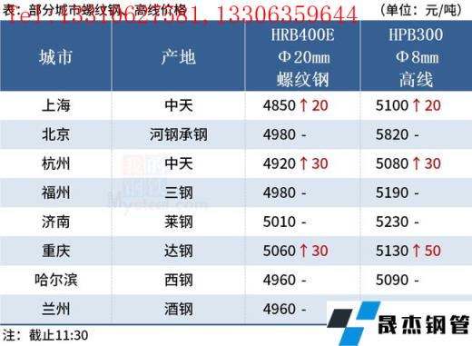 ◎上海:10日早盘建材市场价格上涨20。现螺纹4780-4820,西城抗震4830,其他4700-4760,兴鑫抗震4770,联鑫黄海抗震4780,盘螺4900-5100,高线亚新4800。(单位:元/吨)