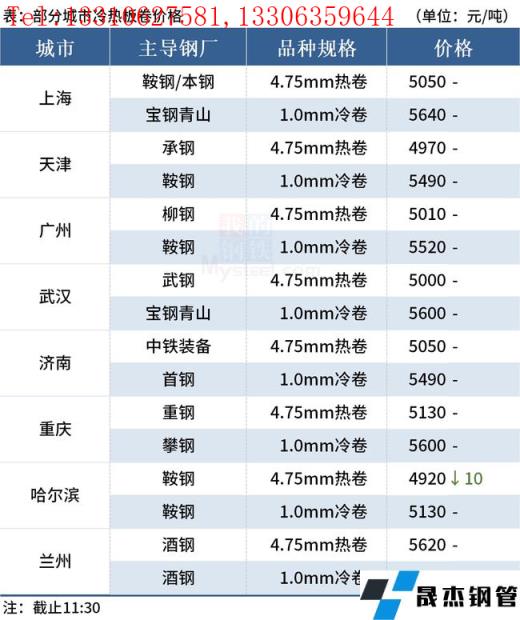 ◎乐从:10日早盘热卷市场价格暂稳,4.75以上普柳燕5010-5020,2.75普5050-5200锰5200-5220。(单位:元/吨)