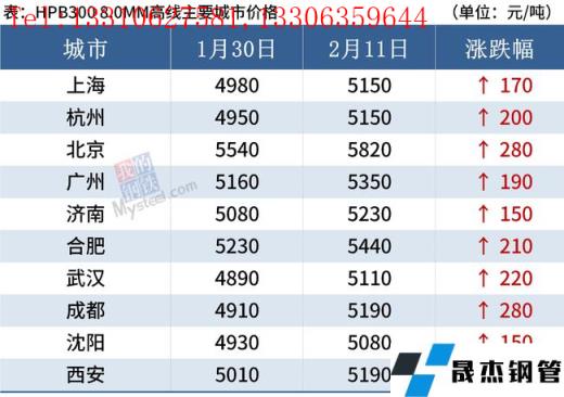据监测,截至2月11日,全国主要城市20mm三级抗震螺纹钢均价5032元/吨,较节前(1月30日)上涨215元/吨;8.0mmHPB300高线均价5244元/吨,较节前上涨221元/吨。