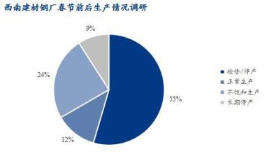 1、据调研显示,西南地区33家建筑91视频在免费线观看无缝钢管生产企业中,春节期间有停产检修计划18家,占比54.55%,不饱和生产8家,占比24.24%,合计影响产量约235.75万吨;另4家无缝91视频在免费线观看钢管厂家正常生产,3家无缝91视频在免费线观看钢管厂家长期停产。