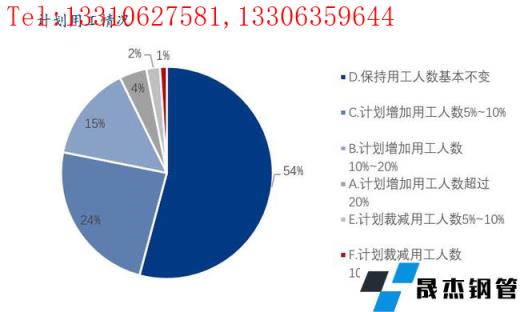 本次调研样本企业中未来一段时间,企业计划用工有增加计划的占比43%;保持员工人数不变的占比54%。