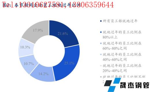 去年各地对“就地过年”政策响应较为积极,春节期间员工就地过年比例较高。今年春节期间员工就地过年比例达80%以上的企业占调研样本比例达到46.8%,同时就地过年的员工比例不到20%的企业占比17.9%。