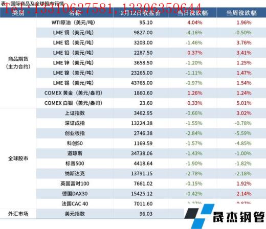 金融市场:本周主要商品期货品种多上涨,其中白银上涨5.01%;全球股市中,中国股市中仅上证指数上涨3.02%,美国三大股指均收跌,欧洲股市上涨;美元指数96.03,上涨0.59%。