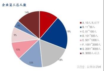 员工在100人及以下企业占比48.3%,100-1000人占比24.83%,1000人以上占比26.83%。