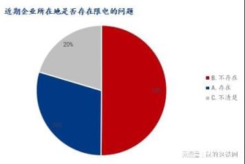 参与调研企业中,50.11%企业表示不存在限电情况,29.49%表示存在,20.40%表示不太清楚。