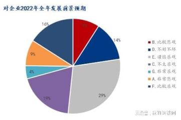 5、对企业2022年全年的发展前景预期,49.45%企业偏乐观,37.03%企业偏悲观,19.07%企业认为不好不坏。