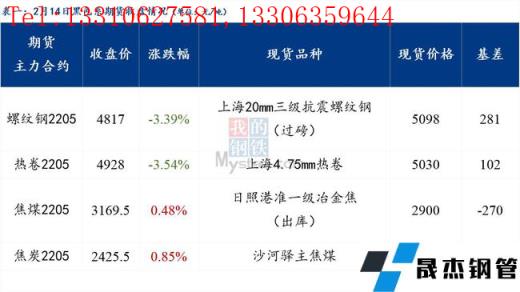 2022年02月14日日报:钢材_无缝钢管价格指数下跌31.62元/吨