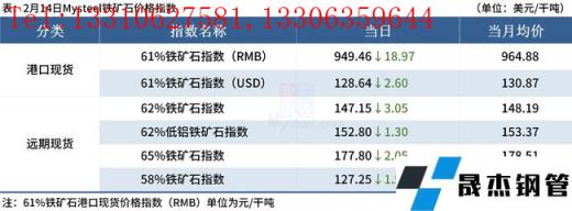 ◎ 2月14日,全国主港铁矿石成交90.30万吨,环比增7.9%;237家主流贸易商建材成交5.61万吨。