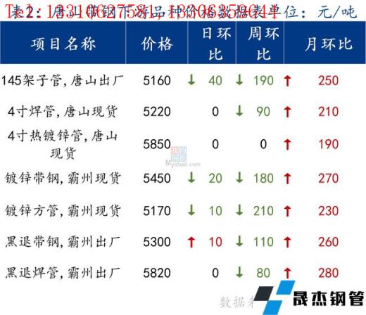 145带钢出厂4890元/吨,较上一交易日跌20元/吨。355带钢市场现货价格4900元/吨,较上一交易日涨70元/吨。焊管价格5220元/吨,镀锌管价格5850元/吨,较上一交易日持平。