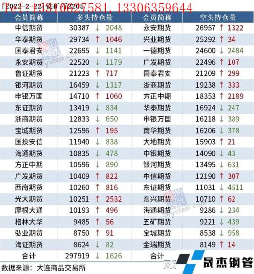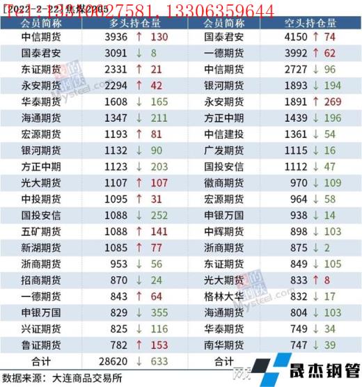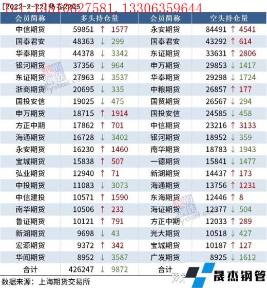 截至2月22日收盘,螺纹钢2205收4734元/吨,跌1.13%;热卷2205收4850元/吨,跌1.34%;铁矿石2205收684.5元/吨,跌0.07%。