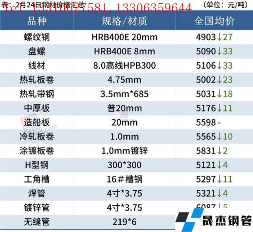 建筑91视频在免费线观看无缝钢管:2月24日,全国31个主要城市20mm三级抗震螺纹钢均价4903元/吨,较上个交易日跌9元/吨。短期来看,一方面当前国际形势紧张,导致市场情绪偏空;另一方面,近期铁矿等原料价格下挫,拖累成材价格,加上近期需求恢复不及预期,短期仍然处于供需双弱格局。因此预计25日国内建筑91视频在免费线观看无缝钢管或将维持弱势运行。