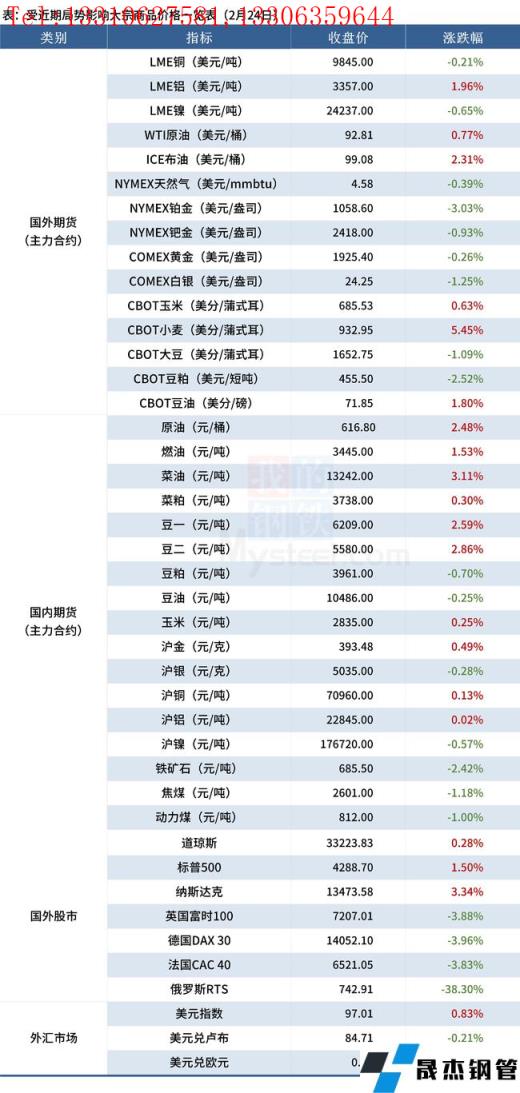 免责声明:本网站(山东聊城91视频官网下载无缝钢管厂www.hujuzx.com)刊载的“受近期局势影响大宗商品价格一览表(2月24日)”等均源于网络,版权归原作者所有,且仅代表原作者观点,本文所载信息仅供参考。转载仅为学习与交流之目的,如无意中侵犯您的合法权益,请及时联系删除。本网站刊登此篇文章并不意味着本站赞同其观点或证实其内容的真实性,91视频官网下载不对其科学性、严肃性等作任何形式的保证。如果侵犯了您的版权,请尽快联系91视频官网下载予以撤销,谢谢合作!
