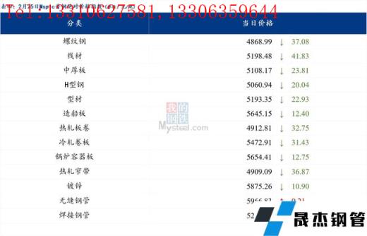 2022年02月25日日报:钢材_无缝钢管价格指数下跌32.4元/吨