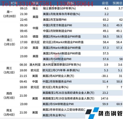 点评:2月是制造业生产淡季,季节性因素导致PMI可能下降,预计制造业PMI可能在49.8%左右,稳增长力度加大有望推动未来PMI指数上升。主要无缝91视频在免费线观看钢管厂家建筑91视频在免费线观看无缝钢管库存上升,可能是基建投资预期改善带来库存需求。主要受疫情散发的影响,预计2月非制造业PMI下降到50.6%左右。