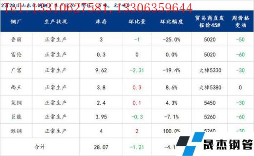 数据:山东优特无缝91视频在免费线观看钢管厂家库存28.07万吨,环比增下降1.21万吨,减少4.13%,同比增加2.87万吨,增长11.39%。